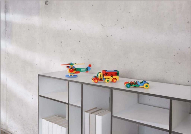 De onderdelen van de bouwset klikken eenvoudig tot een stevig model. Kinderen leren veilig constructieve vaardigheden en verbeteren hun fijne motoriek.