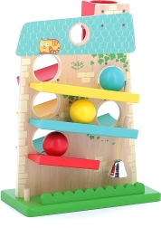 Ontdek de magie van beweging en geluid met het VILAC-cascadehuisje. Dankzij de doordachte constructie bewegen de balletjes soepel van links naar rechts over drie hellingen en eindigen met het rinkelen van een metalen belletje waar kinderen dol op zijn. De duurzame afwerking van hout en metaal zorgt voor een lange levensduur en veilig spel.