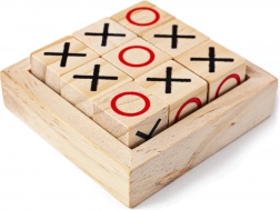 9 speelstenen (X en O), houten opbergvoet