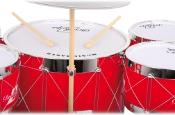 De set is ontworpen om de natuurlijke ontwikkeling van kinderen te ondersteunen: het traint het ritmegevoel, de hand-oogcoördinatie en de concentratie. Het vuurrode design motiveert om muziek te ontdekken en brengt energie en plezier in de kinderkamer.