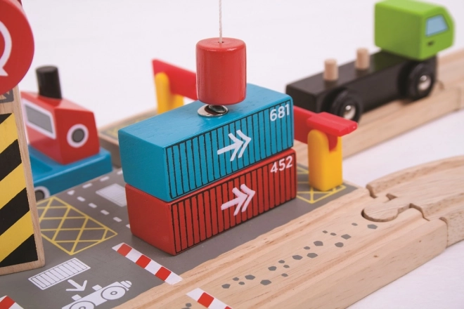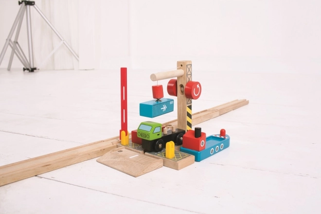 Ontdek een fantastische houten overslagset met een functionele magnetische kraan die kinderen kennis laat maken met de wereld van havens en spoor. De set bevat een houten vrachtwagen met containers en een robuuste kraan voor gemakkelijk laden en lossen. Het geheel is veilig, duurzaam en nodigt uit tot vrij spel.