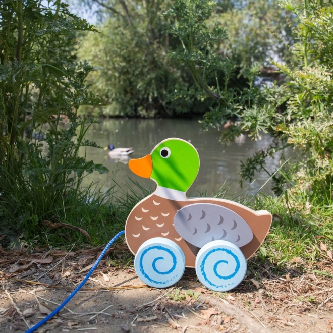 Deze klassieke trekeend nodigt kinderen uit tot actief spel en de eerste wandelingen. Dankzij de stabiele wielen en de soepele loop is hij gemakkelijk aan het touw te leiden, terwijl de vleugels vrolijk klapperen tijdens het rijden. De combinatie van aantrekkelijke kleuren en de prettige houten afwerking stimuleert op natuurlijke wijze nieuwsgierigheid en zelfstandige beweging.
