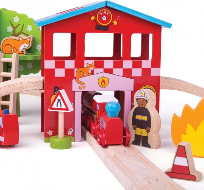BIGJIGS RAIL houten treinbaan – brandweerkazerne