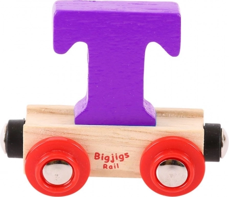 De houten Bigjigs Rail-wagons met de letter T, verkrijgbaar in diverse kleuren zoals rood, paars, oranje, groen, geel of blauw, zijn ideaal om eigen naamtreinen of andere woorden-treinen te maken. Dankzij de magnetische koppelingen zijn ze compatibel met andere houten treinsets op de markt. Deze wagons zijn een geweldig hulpmiddel voor de ontwikkeling van kinderen bij allerlei gelegenheden, zoals feestdagen of verjaardagen.