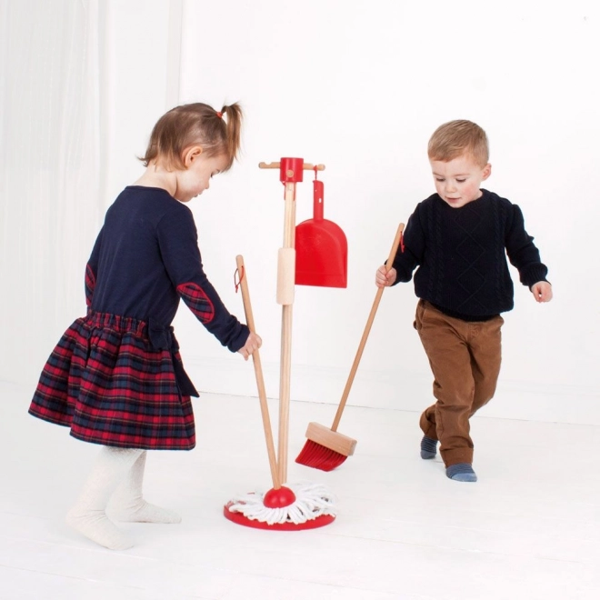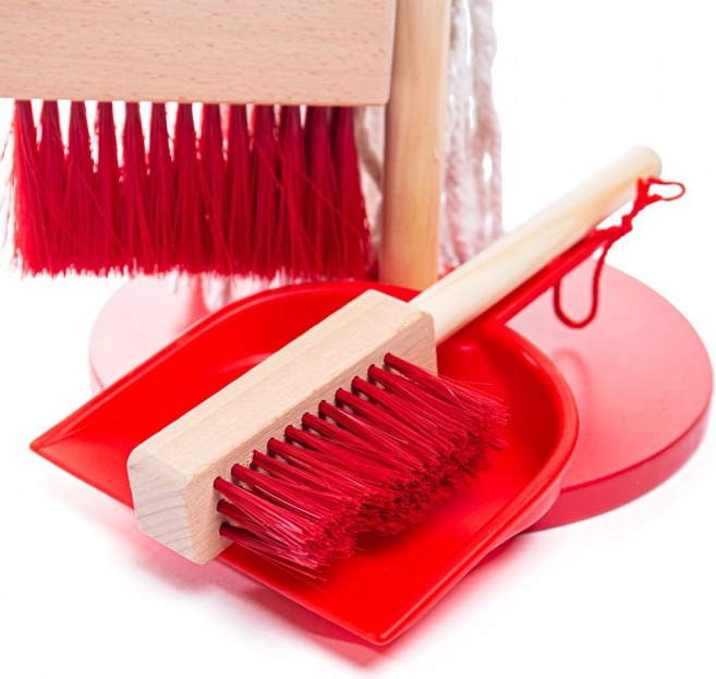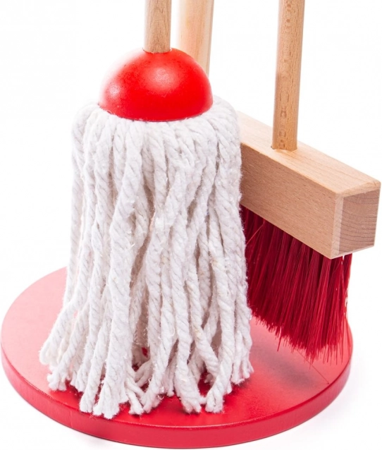 De kinder schoonmaakset in rood stimuleert fantasierijk spel en helpt kinderen op een natuurlijke manier huishoudelijke taken te leren. Dankzij de stevige houten constructie en de doordachte standaard heeft elk onderdeel zijn eigen plek, waardoor opruimen na het spelen net zo eenvoudig is als het spel zelf.