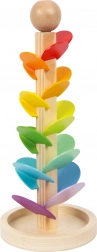 De houten Small Foot knikkerbaan verandert elke rit van een knikker in een klein concert. Terwijl de glazen knikker over de kleurrijke blaadjes glijdt, ontstaan van hoge naar lage tonen die het gehoor prikkelen en kinderen een rustgevende én leuke ervaring bieden. De robuuste houten constructie met een stabiele basis en glad oppervlak voelt prettig aan en is klaar voor dagelijks spelen.