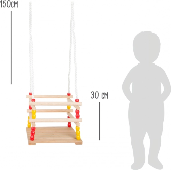 Deze houten schommel SMALL FOOT is ontworpen voor comfortabel en veilig schommelen van kleinere kinderen. De beschermende afscherming biedt steun bij het zitten en vasthouden, de sterke touwen met metalen doorvoeren maken snel aanpassen van de lengte mogelijk en de duurzame metalen ringen zorgen voor eenvoudig ophangen. Het nauwkeurig afgewerkte massieve hout geeft de schommel een lange levensduur en een natuurlijke uitstraling.