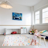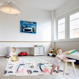 De mat biedt twee verschillende thema’s – een bos en een straat met wegen en auto’s – waardoor kinderen uiteenlopende speelscenario’s hebben en de sfeer van de kamer verandert.