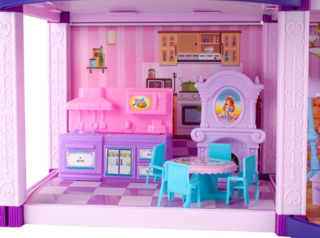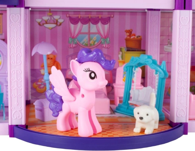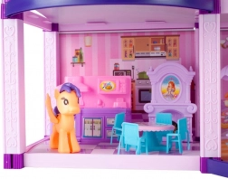 Uniek poppenhuis van kunststof, ideaal voor veel uren speelplezier voor ieder meisje en haar vrienden. Het huis is perfect voor de pony’s en de hond die in de set zitten, of voor poppen. Iedereen zal zich in deze residentie als in een paleis voelen. Het grote huis heeft ook grotere meubelstukken, waardoor het spel makkelijker en realistischer wordt. De interieurs weerspiegelen perfect een echt thuis.