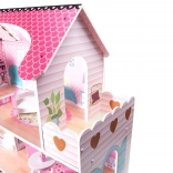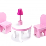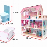 Houten poppenhuis 70 cm met LED-verlichting – roze, MDF, met meubels
