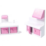 Inclusief 9 meubelstukken: kledingkast, wieg, lamp, 2 stoelen, tafel, keuken met afzuigkap, kastje met gootsteen en toilet – klaar voor direct speelplezier.