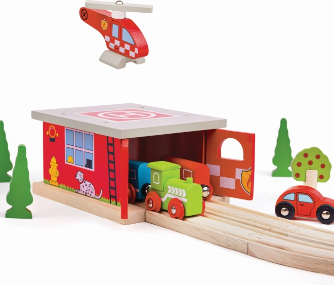 Breid de kinderwereld van treinen uit met een actievolle brandweerkazerne met heliport. Gedetailleerde prints, een doorrijdconstructie en de meegeleverde helikopter nodigen uit tot spannende verhalen en reddingsmissies. Het station is zorgvuldig vervaardigd van hoogwaardig hout en voldoet aan de Europese veiligheidsnormen.