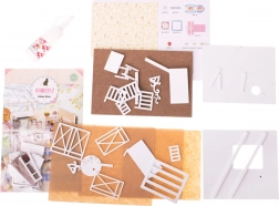 In de verpakking vind je alles wat je nodig hebt: bouwonderdelen voor de kamer, interieur- en decoratie-elementen, lijm en een gedetailleerde handleiding met afbeeldingen. De verlichting wordt gevoed door 2× AAA 1,5 V en 3× LR54 1,5 V (batterijen niet inbegrepen). Aanbevolen vanaf 8 jaar. Het afgewerkte model heeft afmetingen van 17,1 × 13 × 11,6 cm; de verpakking 25 × 18 × 6 cm.