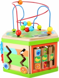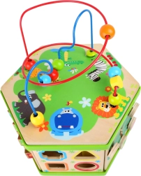 Ontdek het plezier van leren met een multifunctionele houten kubus vol interactieve activiteiten. Het ontwerp met vrolijke safaridieren wekt de nieuwsgierigheid en creativiteit van je kind.