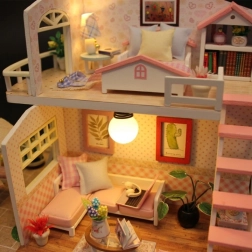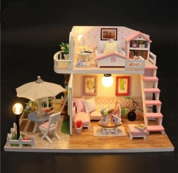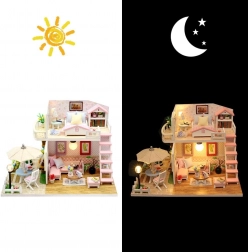 Dit zorgvuldig vervaardigde houten model van een poppenhuis is bedoeld voor oudere kinderen en volwassenen. Het bouwen stimuleert geduld, fijne motoriek en esthetisch gevoel. Na voltooiing wordt het huisje een opvallende decoratie met realistische inrichting en interieurdetaillering.