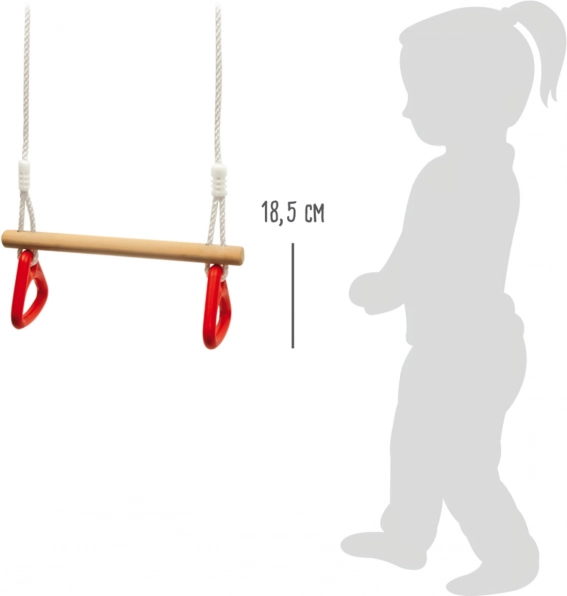 De houten stang met twee kunststof grepen maakt schommelen, zitten en optrekken mogelijk. Ideaal om het bovenlichaam te versterken en de coördinatie te ontwikkelen.