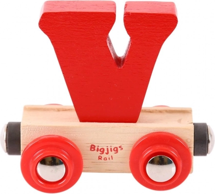 De houten wagon met de letter V is een leuke uitbreiding voor elke treinbaan en ondersteunt spelenderwijs het leren van het alfabet. Dankzij de magnetische koppelingen koppel je hem moeiteloos aan andere wagons en locomotieven. De letter kan van de wagon worden gehaald en met andere letters worden gecombineerd, zodat kinderen namen, woorden of berichtjes kunnen maken.