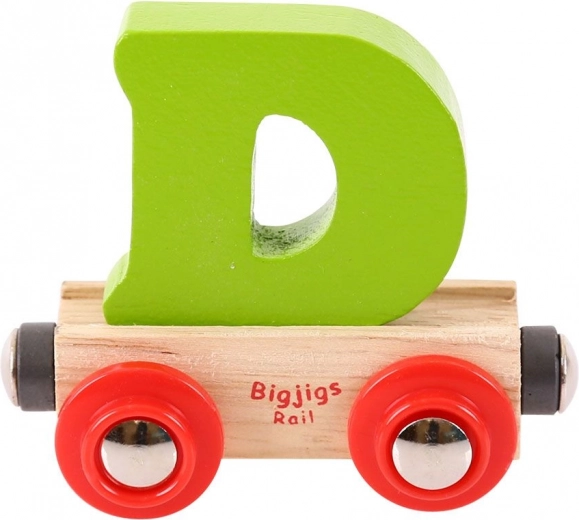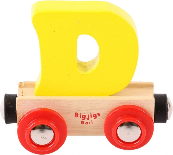 We presenteren het houten treintje Bigjigs Rail met de letter D, perfect voor het stimuleren van de verbeelding van kinderen en het leren van het alfabet. Dit kleurrijke wagonnetje combineert educatieve en speelse functies: