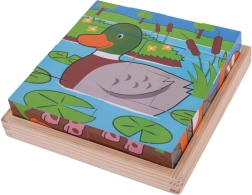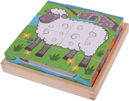 Afbeeldingsblokjes met boerderijmotieven zijn een hit voor kleine bouwers en dierenliefhebbers. Met zestien stevige houten blokken leggen kinderen stap voor stap zes verschillende scènes – je hoeft de blokjes alleen juist te draaien en de passende stukjes te vinden. Het spel ondersteunt op speelse wijze de oog-handcoördinatie, logisch denken en geduld.