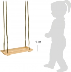 Deze natuurlijke schommel van zorgvuldig bewerkt massief hout biedt veilig en comfortabel schommelen voor kinderen en volwassenen. Dankzij de metalen doorvoeren stel je de hoogte eenvoudig in naar behoefte en groeit de schommel mee met je kinderen. Het natuurlijke oppervlak maakt eigen inkleuring en lakken mogelijk, zodat je het kunt afstemmen op de stijl van je tuin.