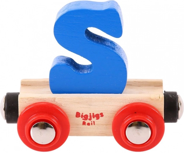 De wagon met de letter S verrijkt elke houten treinbaan en helpt kinderen op speelse wijze het alfabet te ontdekken. De letter is eenvoudig afneembaar en kan naar wens worden verwisseld met andere letters of cijfers – ideaal voor het leggen van namen, woorden en berichtjes.