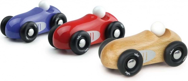 Stijlvolle miniatuur raceauto van gelakt hout die kleine én grote motorfans zal verrassen. Voorzien van massieve rubberen wielen voor een soepele rit, stevige houten constructie en een tijdloos rood design. Perfect om mee te spelen én als decoratie. Gemaakt in Frankrijk.