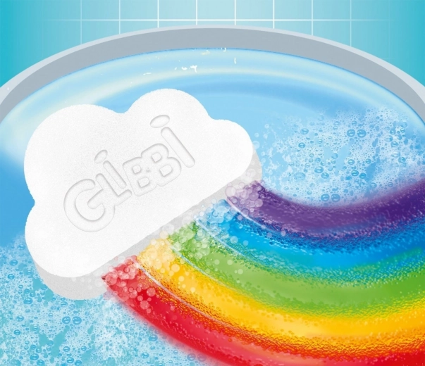 Breng plezier en kleur in het badderen van kinderen. Zodra je de Glibbi Boom regenboog in het bad legt, komt er geleidelijk een prachtig, veelkleurig effect vrij dat het water verandert in een speels regenboogspektakel. Plezier zonder concessies aan netheid en veiligheid.