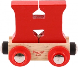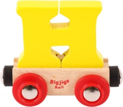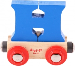 Deze kleurrijke wagon met een afneembare letter H breidt elke houten treinbaan uit en maakt het mogelijk namen, opschriften of wensen te maken voor verjaardagen, naamdagen en Kerst. De letter is afneembaar en uitwisselbaar met andere letters, zodat je samenstellingen eenvoudig kunt aanpassen.