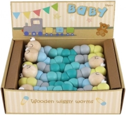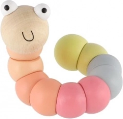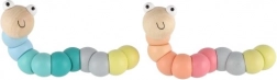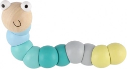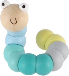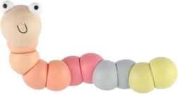 Deze houten worm/rups bestaat uit gladde, kleurrijke segmenten die op elkaar aansluiten en eenvoudig buigen in verschillende vormen. Dankzij de prettige pastelkleuren en het lachende gezichtje sluiten kinderen hem meteen in hun hart. Ideaal voor speels plezier én de ongedwongen ontwikkeling van de fijne motoriek en creativiteit.