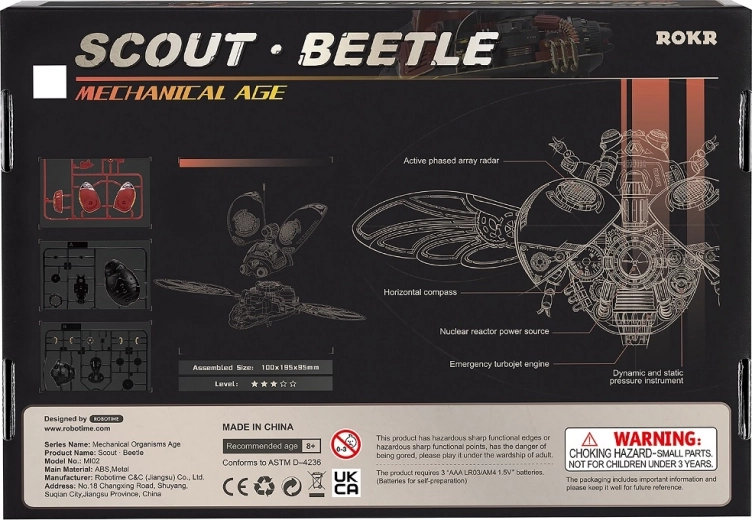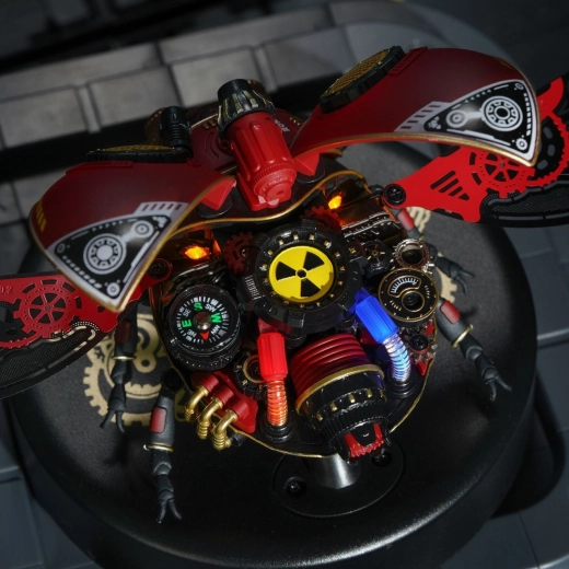Ontdek de fascinerende wereld van mechanica met de RoboTime bouwset – een verkenningskever met beweeglijke vleugels en LED-licht. Deze gedetailleerde set combineert metaal en kunststof voor een authentieke uitstraling en stevigheid. Het gemonteerde model biedt aanraakbediening, motorisch aangedreven vleugels en LED-verlichting, wat de sci-fi- en steampunkstijl benadrukt. Ideaal voor creatieve ontspanning, het ontwikkelen van vaardigheden en als designdecoratie voor kantoor of boekenplank.