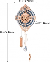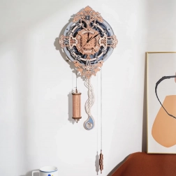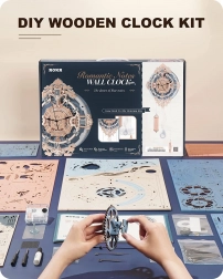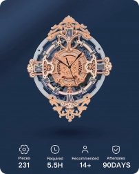 Dit DIY-model combineert een ontspannende bouwervaring met praktische functionaliteit. Na montage wordt de wandklok een elegante blikvanger in de kamer – met Romeinse cijfers, sierlijke ornamenten en zichtbare tandwielen die het vintage karakter benadrukken.