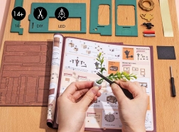 Ontdek een miniatuurwereld vol fantasie – een groen getinte theewinkel met motieven van het Witte Konijn, een zakhorloge en een schaakbordvloer schept de sfeer van een Europese afternoon tea. Wanneer je de LED-verlichting aandoet, verandert het model in een betoverende decoratie met een aangename avondambiance.
