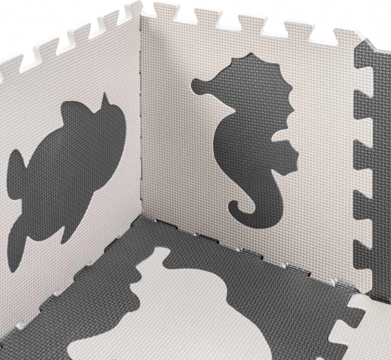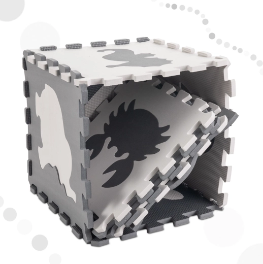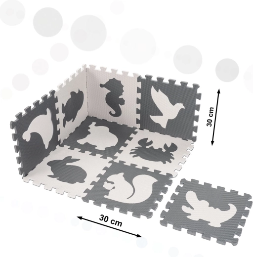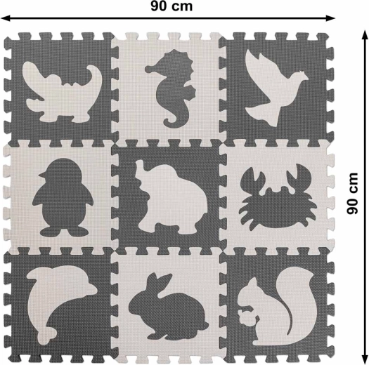 Schuimrubberen educatieve speelmat puzzel dieren, grijs 85 × 85 cm, 9 delen