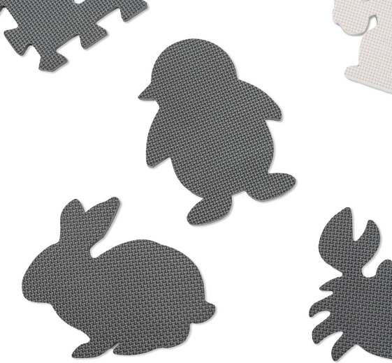 Creëer een veilige en stimulerende speelplek voor je kind. Deze EVA-schuim mat bestaat uit 9 onderling koppelbare tegels met uitneembare dierenvormen en biedt een zachte, dempende ondergrond, een anti-slip afwerking en is waterbestendig. De neutrale grijs‑ecru kleuren passen in elk interieur.