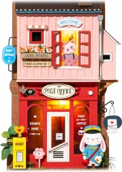 Ontdek de charme van miniaturen met onze uniek ontworpen bouwset "Postkantoor", die decoratieve details combineert met de functie van een ophangrek voor kleinigheden.