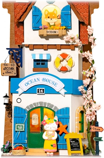 Het bouwpakket bevat alle benodigde accessoires, inclusief houten onderdelen, decoraties, verf en lijm. Het bevat ook een penseel en pincet voor eenvoudig en precies assembleren. De verlichting is eenvoudig te installeren en te bedienen met een schakelaar aan de voorkant van het model.