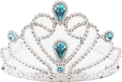 De tiara is versierd met fonkelende blauwe stenen en een ster aan de top, wat het een ideale accessoire maakt voor elke prinses.
