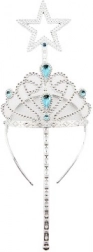 Zeer mooi gemaakte tiara voor in het haar en "magische toverstok" voor feeën of prinsessen. Deze set stelt kinderen in staat hun eigen sprookjesverhalen te creëren en zich in de fantasiewereld te wanen.