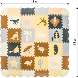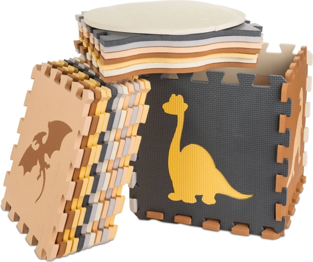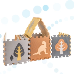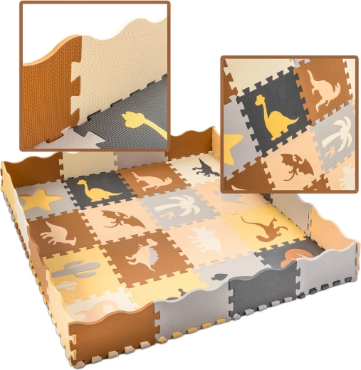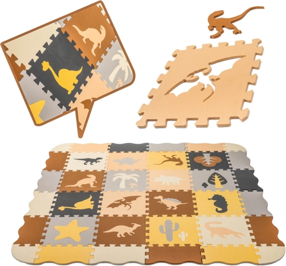 Deze schuimrubberen puzzelmat ondersteunt de ontwikkeling van kinderfantasie en motoriek. De uitneembare dinosaurusvormen dienen als een leuke sorteerpuzzel – kinderen oefenen vormherkenning en coördinatie door de motieven terug te plaatsen. Contrasterende kleuren en een aangename, gestructureerde afwerking prikkelen zicht en tast.