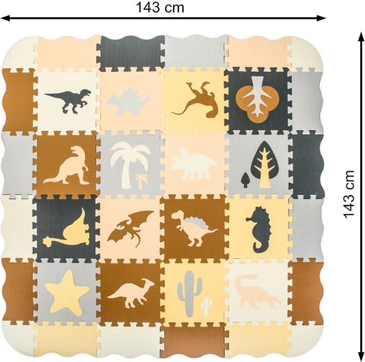 De mat kan worden gebruikt als een groot speeloppervlak van 143 × 143 cm of worden opgebouwd tot een speelbox van 113 × 113 × 16 cm. Het zachte EVA-schuim dempt schokken, isoleert tegen kou en is antislip. Het materiaal is gemakkelijk schoon te maken – gewoon afnemen met een vochtige doek. Het elegante, neutrale palet past bij een modern interieur en kan een tapijt in de kinderkamer vervangen.