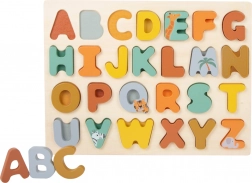 Deze kwalitatieve houten puzzel in moderne pasteltinten biedt 26 verhoogde letters die kinderen gemakkelijk kunnen vastpakken, in de juiste opening kunnen plaatsen en zo het alfabet op een natuurlijke en speelse manier leren. Schattige safari-motieven – zebra, giraffe, olifant en tijger – stimuleren dagelijks ontdekken en speelplezier.