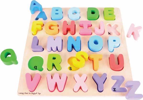 Het grote houten alfabet van Bigjigs biedt kinderen een unieke kans om vertrouwd te raken met letters dankzij de speelse en educatieve functie. Elke letter is vrolijk kleurrijk, wat het leren en onthouden vergemakkelijkt. De puzzel is gemaakt van hoogwaardige materialen, is veilig en ideaal voor kleine kinderhanden.