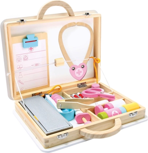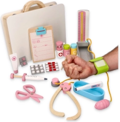Houten doktersset voor kinderen is ideaal voor kleine dokters die de wereld van de gezondheidszorg willen ontdekken. Deze uitgebreide set biedt 16 delen die zorgvuldig zijn georganiseerd in een praktische koffer, waardoor gemakkelijke toegang en opslag mogelijk is. Kinderen kunnen de koffer zelf openen en na het spelen alles eenvoudig weer inpakken. Dit speelgoed biedt niet alleen eindeloos plezier voor kinderen, maar ontwikkelt ook hun fijne motoriek en stimuleert creativiteit.