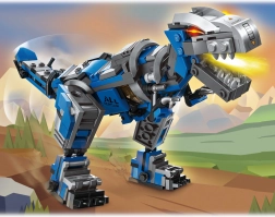 Eén set, drie modellen. Schakel eenvoudig tussen een angstaanjagende robotische tyrannosaurus en twee verschillende offroad-auto’s voor eindeloos speelplezier.
