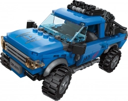 Grote wielen en gedetailleerde afwerking van de terreinwagens zorgen voor een geweldige rit voor de fantasie. De stevige verbinding van ABS-blokken houdt alles goed bij elkaar.