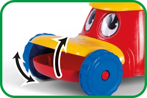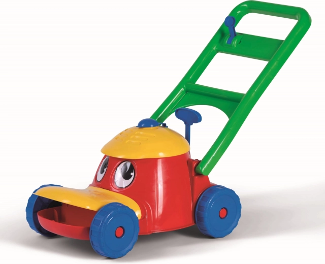 Vrolijke plastic grasmaaier voor kinderen is een leuk accessoire voor tuinspelletjes. Met zijn schattige gezichtje trekt hij de aandacht van elke kleine tuinier.