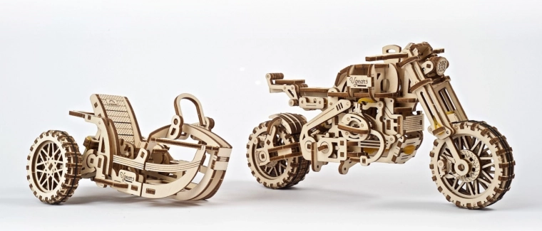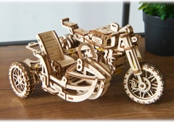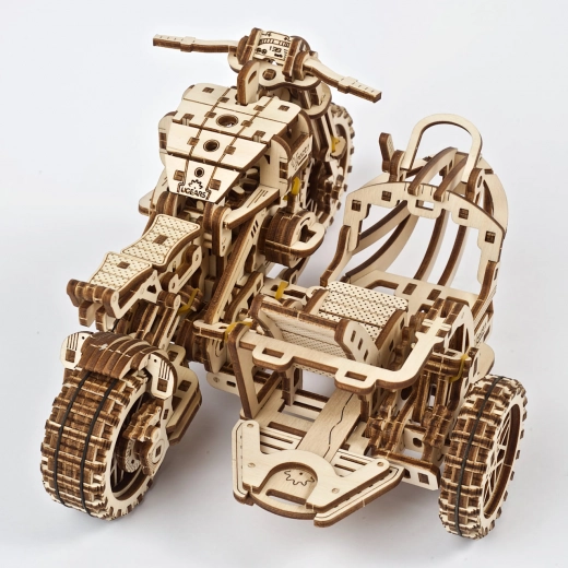 Na voltooiing krijg je een indrukwekkend model van een motor met zijspan dat een plank siert en elke techniekliefhebber zal verblijden.