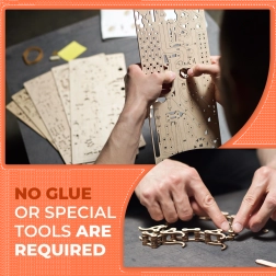 Het bouwen is precies en leuk dankzij 400 nauwkeurig uitgesneden onderdelen en een gedetailleerde handleiding. Het model biedt de mogelijkheid tot modulaire koppeling – verbind twee tot vier banen en creëer een gesynchroniseerde mechanische opstelling vol dynamiek en competitie met vrienden.