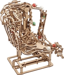 Ontdek plezier en technische elegantie met de UGEARS bouwset – een houten mechanische knikkerbaan met kettingaandrijving. Het handmatige mechanisme laat gekleurde knikkers bewegen over drie unieke secties met obstakels, terwijl de open constructie je laat genieten van tandwielen en raderen in actie. Het model kan worden gekoppeld aan andere sets voor een nog spectaculairdere baan. Een perfecte keuze voor creatieve liefhebbers die houden van uitdagingen en precieze houten modellen.