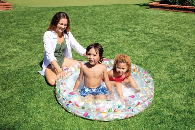 Een diameter van 122 cm en een hoogte van 25 cm bieden voldoende speelruimte, terwijl het water op een veilige hoogte tot 14 cm blijft voor een zorgeloze verfrissing.